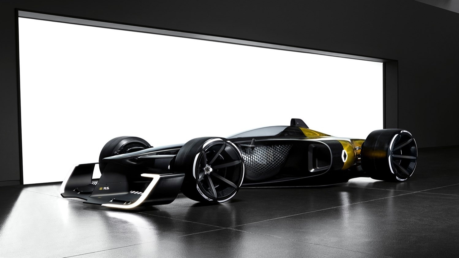 Двигатель с турбонаддувом, тонкое антикрыло и цвет кузова — R.S. 2027 Vision Concept с гордостью перенял характерные черты своего предшественника, Renault RS01, созданного в 1977 году. Чтобы подчеркнуть его высокие эстетические, технические и эксплуатационные качества, желто-черная окраска кузова выделена металлом и золотом.