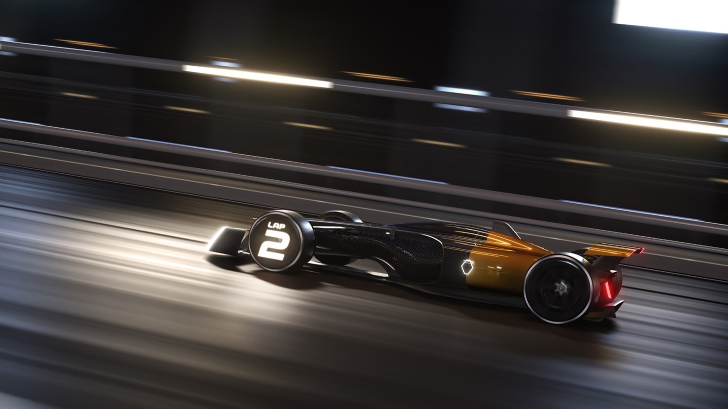 Встроенная в колеса активная светодиодная подсветка передает основную информацию, например, место пилота в гонке и запас энергии автомобиля.